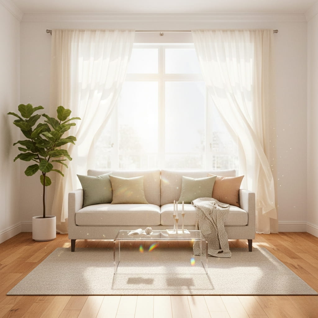By using light colors, mirrors, multi-functional furniture, vertical space, natural light, decluttering, smart furniture placement, the right rug, airy materials like glass, and a few carefully chosen details, you can transform a small living room into a space that feels bright, open, and stylish—without any major renovation.
