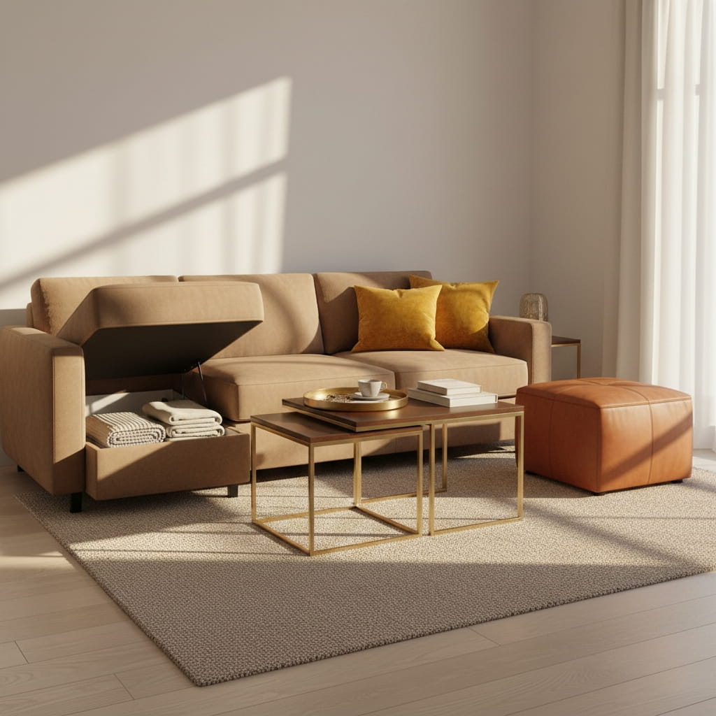 In a small living room, every piece needs to earn its place. Multi-functional furniture helps you save space and reduce visual clutter, so the room feels more open and organized. The right pieces can give you storage, seating, and style all at once.