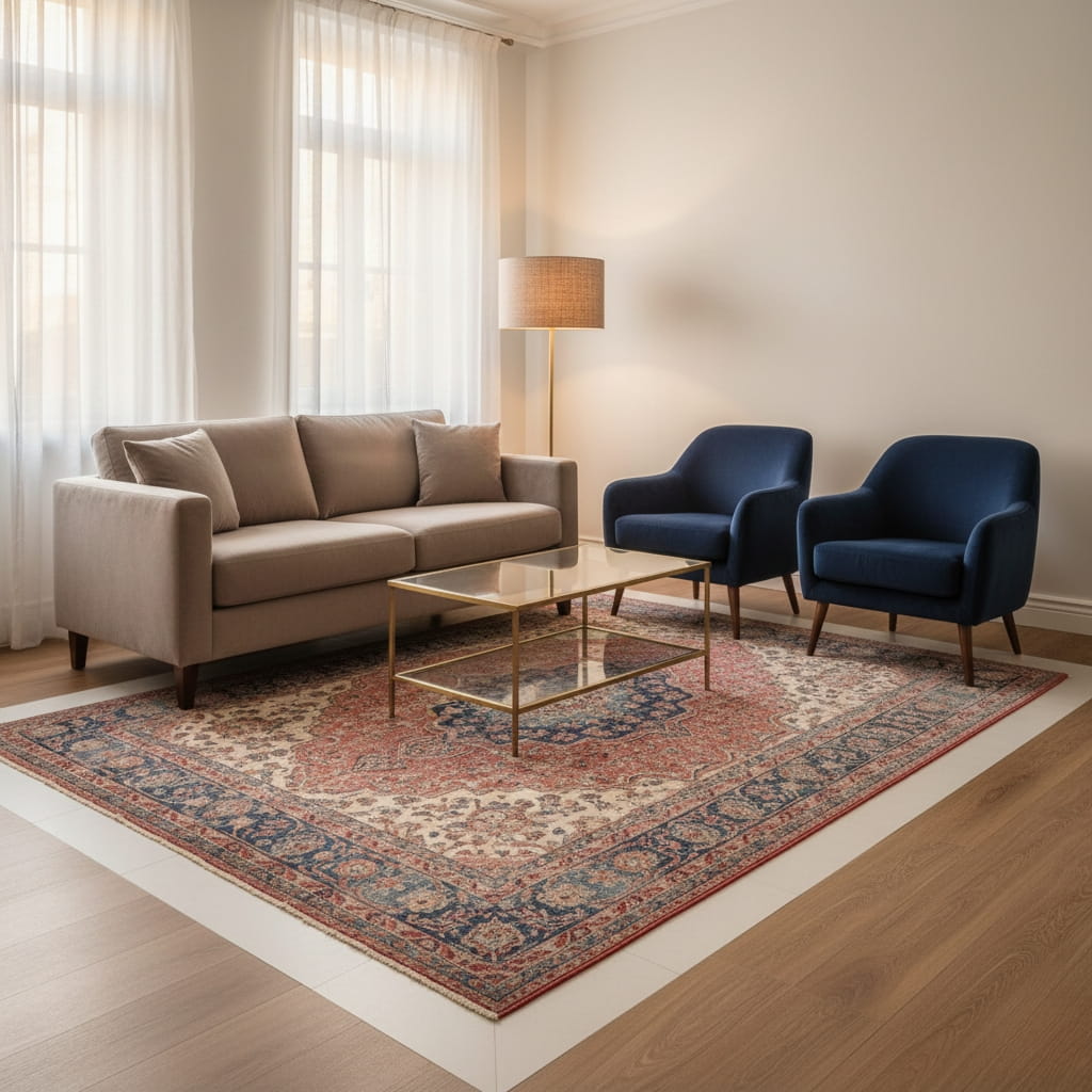 Pro Tip: Use a rug to visually anchor your seating area. Just make sure it’s the right size—too big can overwhelm the room, and too small can look awkward and disconnected.